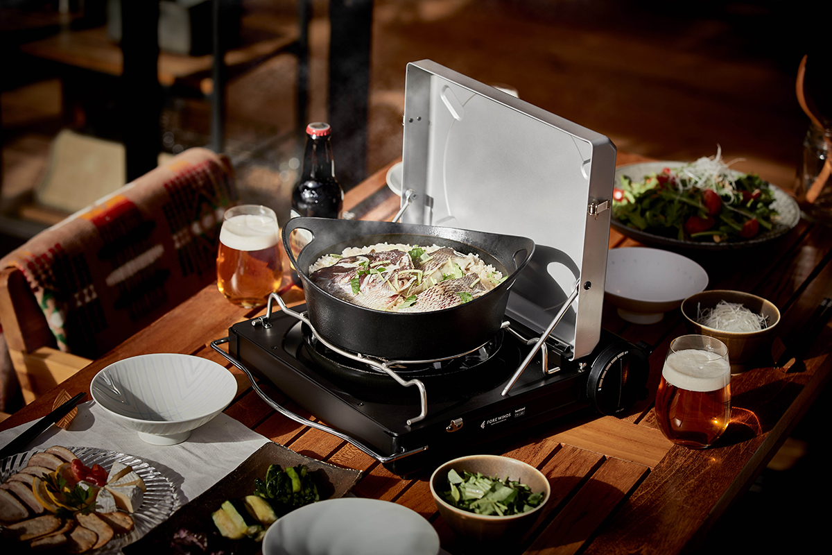 產品設計卓越,是一款室內戶外均可使用的便攜爐。頂蓋和防風圈雙重防風設計,282個火焰口確保超強火力。親朋好友相約戶外野營也可輕松使用,可使用率高的人氣產品!黑色和銀色2色可選。