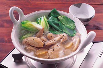 將雞翅膀和A材料放入鍋中煮沸去除澀味后,用小火煮大約十分鐘,期間撈出水面浮泡。